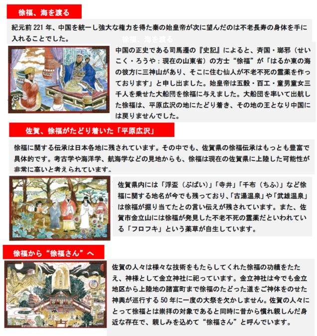 佐賀県内には徐福にまつわる話が数多く残っています。