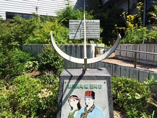 | 徐福長寿館入口前 徐福とお辰の日時計 |