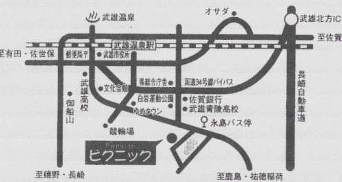 ペンション picnic は武雄市内から少し離れた武雄温泉保養村内に