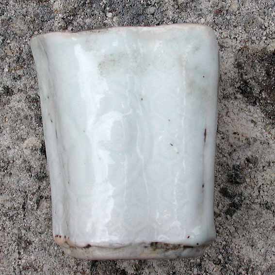 写真右は、九州陶磁文化館の柴田コレクションに収められている白磁猪口である。特に深い意味はないが、これと同じ製品が昨日の夕方出土した。