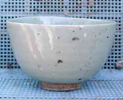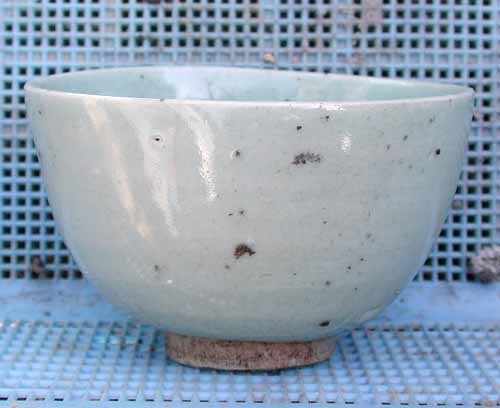 この碗は、高台を無釉にし、外面に青磁、内面に透明釉を掛けた掛け分け碗である。近接する谷窯などでも多く生産されており、もしかしたら、その辺りの窯の製品かもしれない。