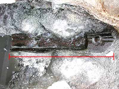 ここで、あらためて今回出土した木製品を見てみると、細長くて幅は中槽の底と同じくらい、何となくそれっぽい。しかも、絵図の中でも柄状の道具は中槽の中で自立しており、やはり刃先が付くとすれば、直角に近い角度である可能性が高い。しかも、出土した場所も悪くない。