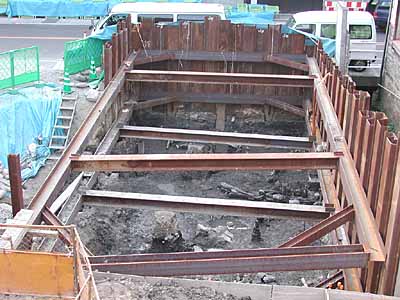 まあ、いろいろ調査を重ねてくると、時にはこんなこともないわけじゃない。予算オーバーで連日自分たちだけで掘り続けたこともあれば、褒められることじゃないが懐中電灯ってことも。今回なんて、やればまだ明るいうちに終わりそうなので、楽勝、楽勝。ただし、唯一の気掛かりは写真。早めに完掘しないと、暗くて終了写真が撮れなくなってしまうからだ。