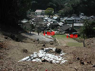 ![]() 伐採直後の天狗谷窯跡(東から) たしかに窯業に水は不可欠です。原料の生成や成形をはじめ、水なくしては営めません。しかし、その生産工程において、唯一窯体そのものは極度に水を嫌います。水分が多いと温度管理も容易ではなく、製品がうまく焼けないためです。そのため、通常登り窯に接した山側には、窯体に沿って上から下まで長い水切り溝が掘られます。また、焼成の際にも、窯体そのものをよく乾燥させる意味もあって、まず最下部の胴木間に一定時間火が入れられます。 ところが、天狗谷の窯体は、周囲の岩山から流れ落ちる水が、逆に集中する谷部に築かれています。しかも各焼成室の出入口、そして、それに続く物原を山側(南側)に設けている関係で、山側にあるはずの水切り溝が見当たりません。これでは、うまく流水を抑えることができなかったに違いありません。 また、失敗品を廃棄することによって形成される物原の立地は、通常の窯場では、窯体よりも低い谷側が選ばれます。これは現在の不燃物などの処理方法と共通しています。埋め立てて平地ができれば、その部分の二次利用も可能です。登り窯の場合も、こうしてできた平地の上に新たな窯が築かれている例も珍しくありません。ところが、前述したように、なぜか天狗谷窯の場合は物原が山側にあります。そのため、徐々に失敗品が蓄積してしまい、現在も窯体に隣接して小山のようになって残っています。この状況では、失敗品の廃棄も一苦労だったはずです。 それに、現実的には、隣接して谷がないわけでもないのです。たしかに窯体の上半部は両側(南北)山になっていますが、下半部の北側には谷が控えています。窯体を少し下にずらせば利用できなかったはずはないのですが、試掘した状況を見ても、なぜか見向きもされていません。 実は、3年前に発掘調査をはじめる前には、物原部分の地山面はいくらかでも谷になってるのではと想像していました。急速な磁器生産の進展に伴い、当初予想した以上に生産量が伸び、浅い谷が埋まって山のようになったのでは、という希望的観測を持っていたわけです。ところが、現実は小説より奇なりといいますが、いささか受け狙いもほどほどにして欲しいってとこでしょうか。まったく谷の痕跡すらなく、地山面は南側の崖に向って徐々に傾斜して上っていたのです。何度目をこすって凝視しようが、逆さから見ようが、この事実は如何とも動かせません。これはすでに窯体上・中・下部横の物原で確認しているので、もはや現実のこととして受け止めなければなりません。天狗谷窯の廃棄場所には、たしかに最初から谷はなかったのです。