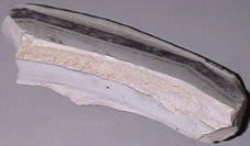 内面には、見込みに緑絵具で家屋状の文様が描かれるが、剥落しているため明確ではない。見込みの周囲には、八角形の色絵線一本とその外側に帯を巡らし、四方襷文で埋めている。この帯に塗られた色は黒っぽく変色しているが、よく観察すると元は青絵具であったことが分かる。また、口縁部は窓絵状に区画し、中を地文で埋め、その上を上絵具で塗りつぶしている。区画内の文様としては、青海波と四方襷文らしいものが確認でき、塗りつぶしている絵具は、緑と青が確認できる。 |