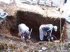 突然だが、8月17日から、国指定史跡天狗谷窯跡の発掘調査を行っている。もちろん、現在も調査は進行中!! 天狗谷窯跡といえば、長く日本磁器発祥窯と信じられてきた窯である。別項で詳しく触れているが、現在でもその可能性が完全に否定されたわけではない。今回は物原の調査も行うので、もしかしたら何か進展があるかもしれない。もちろん、どう転ぶかは、現時点ではまったく分からないが…。 |