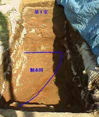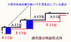 写真右側がA窯、左がB窯。E窯はA窯の床下に遺存。C窯はB窯上に築かれていた。 |