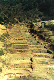 右側のシートを張ってある部分が当初物原を探したCT。上に見える白い土のう部分が窯体を調査した12〜14室付近。(西から) |