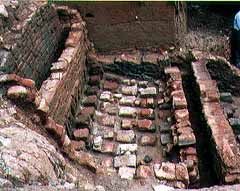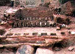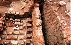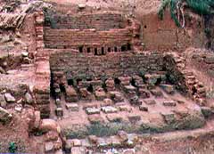 Y1は2つの焼成室と胴木間(焚口)、窯尻から構成される全面磚(レンガ)積みの窯である。水平長約7.3m、傾斜角16°、焼成室の幅はおおよそ3.2〜3.4mで、奥行きは2.4〜2.5m程度である。 これを肥前の窯と比較すると、焼成室の規模や傾斜としては初期の窯と大差はないが、焼成室数は圧倒的に少なく、全長も短いことにお気づきであろうか。ちなみに肥前の窯では、初期の小規模な陶器窯である飯洞甕下窯跡(北波多村)でも、焼成室数7室、全長は18m以上である。また、有田などの初期の陶器窯ではこれよりも格段に大きく、焼成室10数室〜20数室、全長30数m〜60数m程度もある。しかも、肥前の窯ではわずかな例外を除けば、全面磚積み構造は江戸時代後期にはじまる。なお、この平和県では、ほかにもいくつかの窯が調査されているが、すべて類似した構造で、これまで焼成室も3室が最高だという。 |