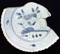 染付草花蝶文小皿 (楠木谷窯跡/1640年代後半)