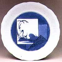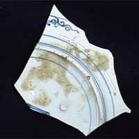 染付色紙草文輪花中皿 (楠木谷窯跡/1650年代前半)
