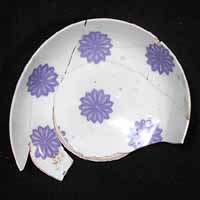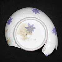 泉山口屋番所遺跡の廃棄土壙から出土した小皿である。窯割れしてかなり歪んでいるが、口径は13cm代程度と推定される。底径は7.7cm、器高は3.5cmほどである。