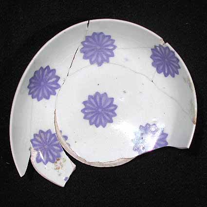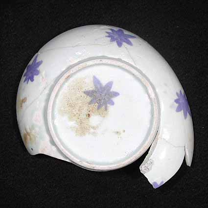 こうしたコンニャク印判は、1680年代後半、遅くとも1690年代前半の内には使用が開始されたことが確認される。18世紀初頭頃までの早い段階のものは、一つひとつの印面が比較的大きいものが多く、文様も鮮明である。また、この製品の場合は、コンニャク印判のみで施文されているが、むしろ手描き文様と併用するのが一般的であり、中には、手描き文様と組合せて一つの文様を構成しているものや、型紙刷りなどと組合せているものも見られる。