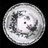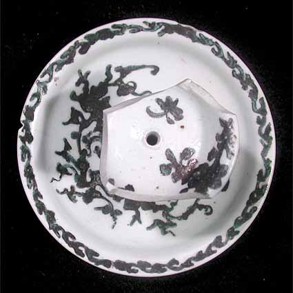 有田」にて、色絵工房跡の可能性が高い“幸平遺跡”の新発見をご紹介した。その後、徐々に事務的な手続きは進みつつあるが、まだ、調査に関する具体的な日程等は決定していない。先日は、遺跡発見の記述で3点ほどの色絵磁器をご紹介したが、本日は、同様にその際に出土した色絵製品の中に、ちょっと変わったものがあったので掲示しておくことにしたい。