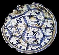 染付銀杏三方割亀甲文皿 (岩中窯跡/1620〜30年)