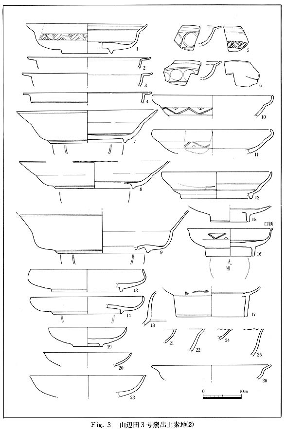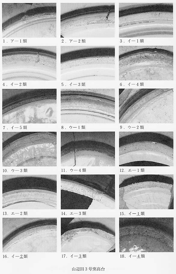 本文中では、染付入り素地の底部を《ア》〜《エ》7種類に分類し、計14タイプに細分した。また、3号窯跡に染付の入らない素地が存在することは意外に知られていないが、体部から《A》〜《C》の3種類、計8タイプ、底部は1種類、計4タイプに分類している。