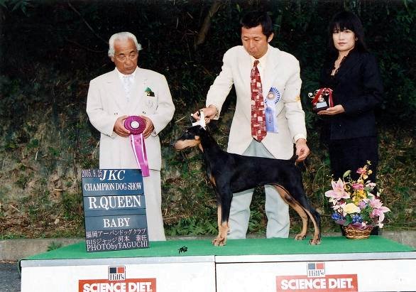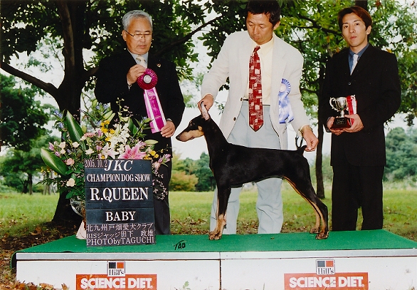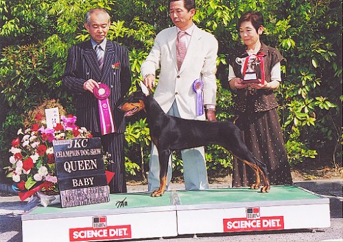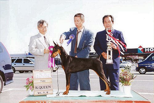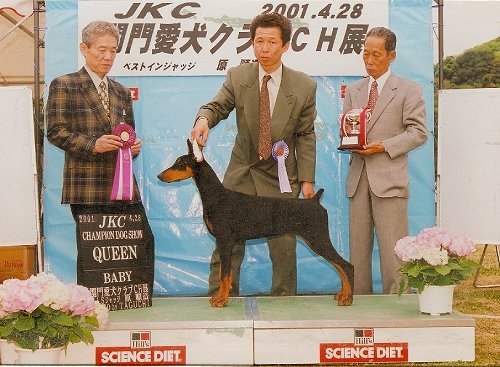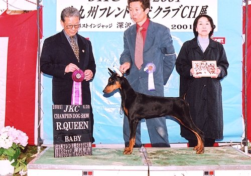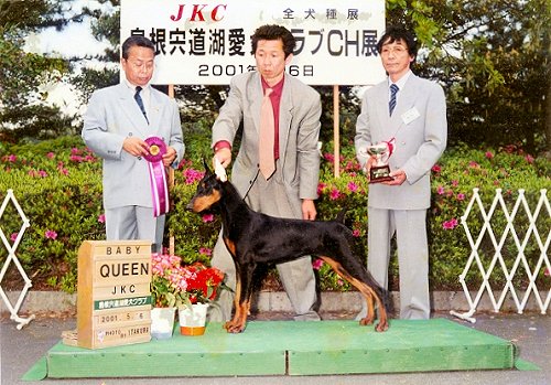 | 2001/4/22 福山全犬種クラブCH展 ベビーベストイン 2001/4/28 関門愛犬クラブCH展 ベビークィーン 2001/4/29 群馬ドーベルマンクラブ展 ベビーベストインスペシャルティ 2001/4/30 北九州フレンド愛犬クラブCH展 ベビーリザーブクィーン 2001/5/6 島根宍道湖愛犬クラブCH展 ベビークィーン 2001/5/19 別府レディース愛犬クラブ展 ベビークィーン 2001/7/8 仙台オールドッグクラブCH展 パピーリザーブクィーン |