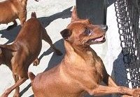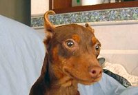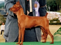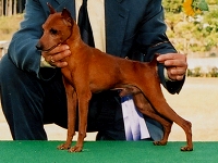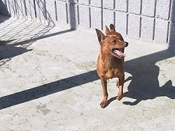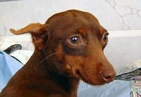 ドーベルマンよりも古く、更にドーベルマンの元となった犬種が このミニチュアピンシャーです。 元々、ドイツでネズミ退治用として、または番犬として活躍していました。 歩き方に特徴がありまして、ピョコピョコと跳ね上がる様に歩きます。 その性格は、非常に活発で遊び好きでひょうきん者でいたずら好きでして、 1日中見ているだけでも飽きることがありません。 (しかし、ミニピンの方が傍観者でいることを許してくれないでしょう。) 更に好奇心が強く、行動力もある犬種です。 ちょっとした隙間からでも脱走してしまいますので、 部屋の出入りには十分に気をつけないと大変な事になります。 家族に対して、持てる限りの愛嬌を精一杯振りまいてくれますが、 知らない人に対する警戒心は強く、立派な番犬としても活躍してくれます。 よく吼えますが、噛み癖はありません。 |