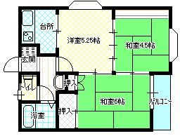 | 間取り | 和6帖、和4.5帖、洋4.5帖、K2帖 | |||||