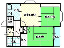 | 間取り | 和6帖、和4.5帖、洋4.5帖、K2帖、バルコニー | |||||