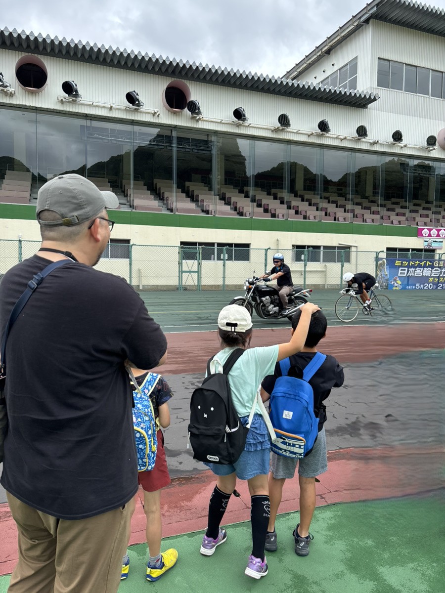 今年も名輪会の行事に招待していただきました。今回、初めて参加をする児童もいたため、間近で見る競輪やオートレース、BMXの迫力にとても驚いていました。また、競輪・BMX用の自転車に乗ったり、バンクを歩いたりと普段はできない体験に喜ぶ姿をたくさん見ることができました。貴重な体験をさせていただき、ありがとうございました。